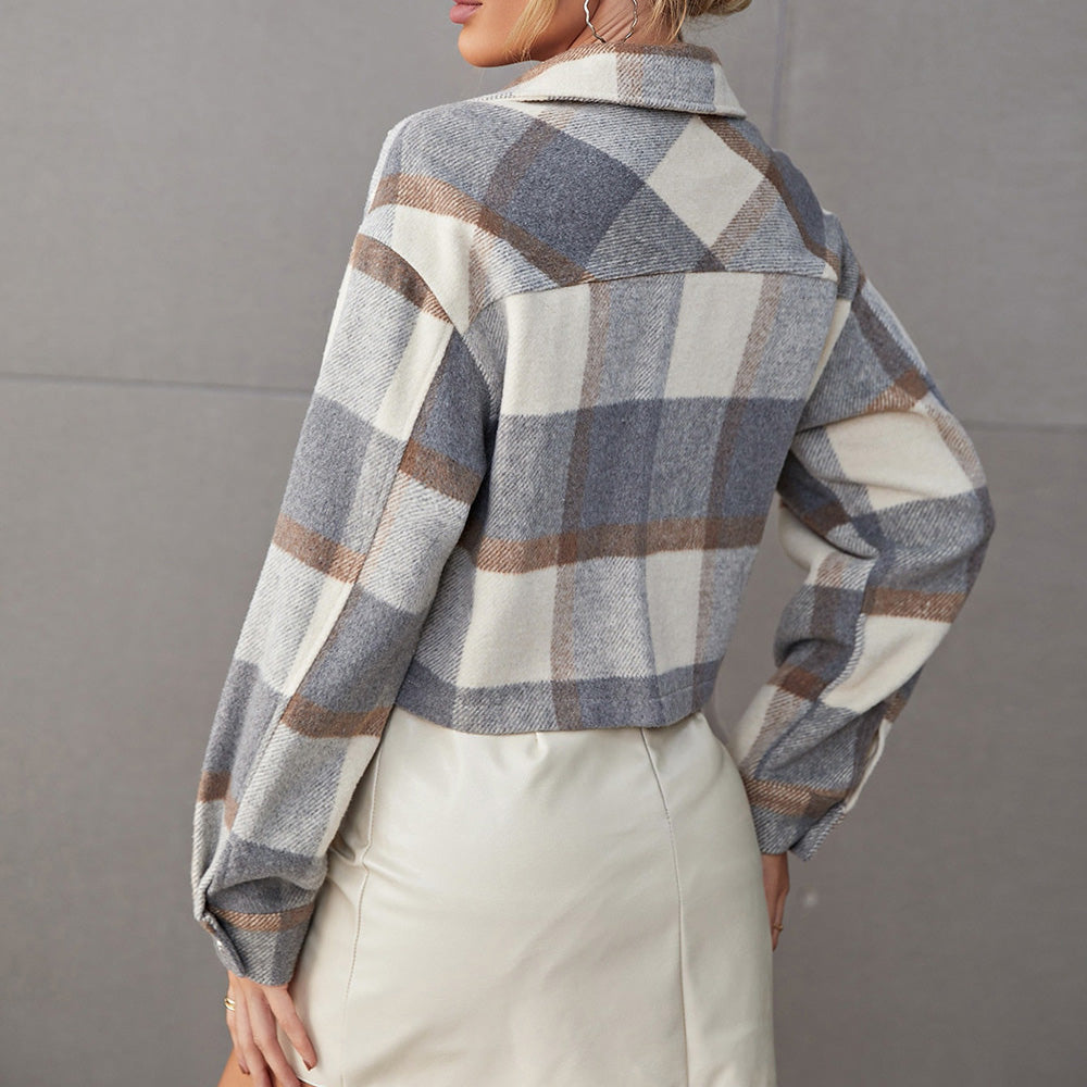Cammila | Veste Courte à Carreaux Boutonnée avec Poches